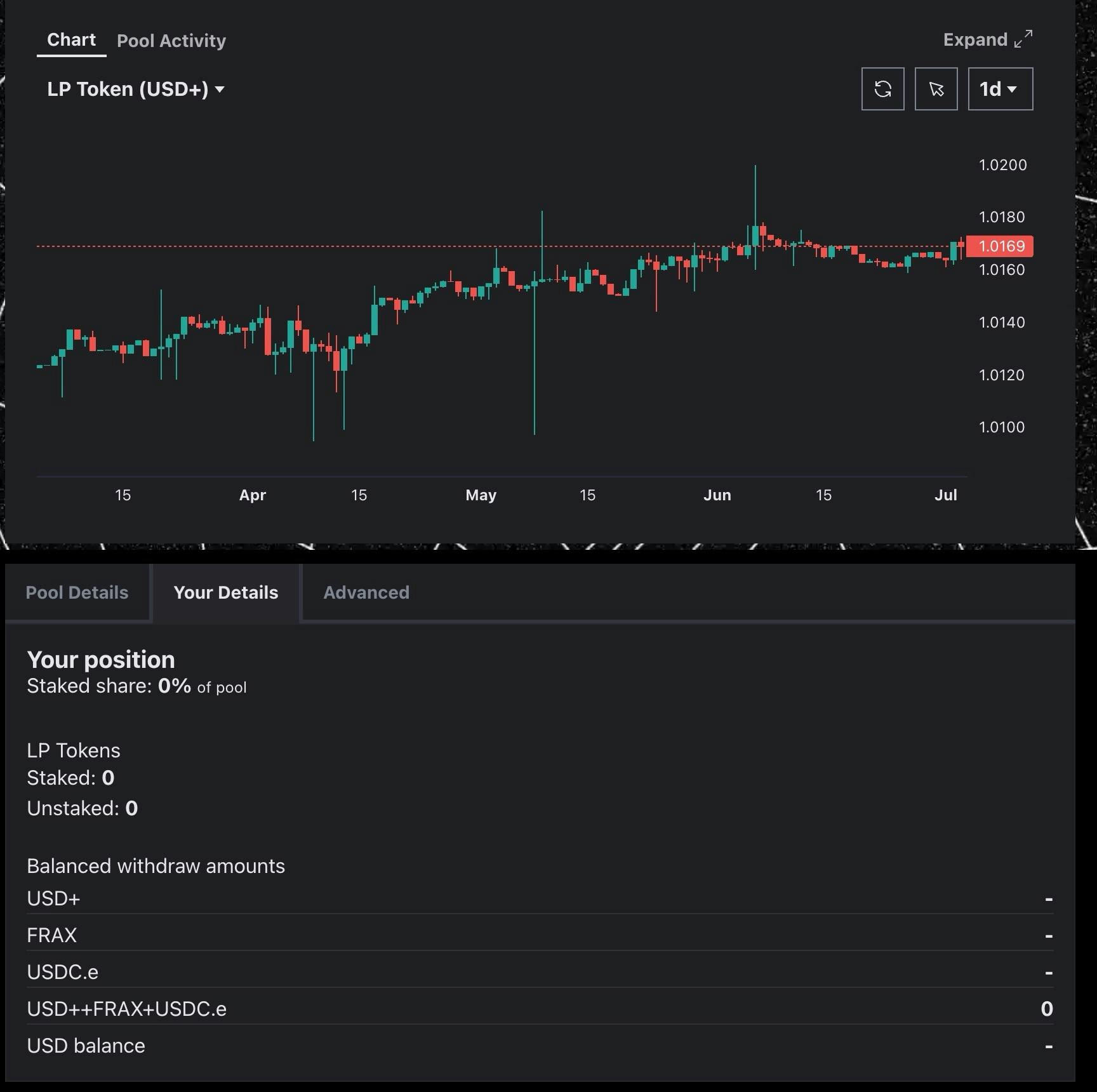 The assets in the liquidity pool are: USD+, FRAX and USDC.e which are all stable coins.