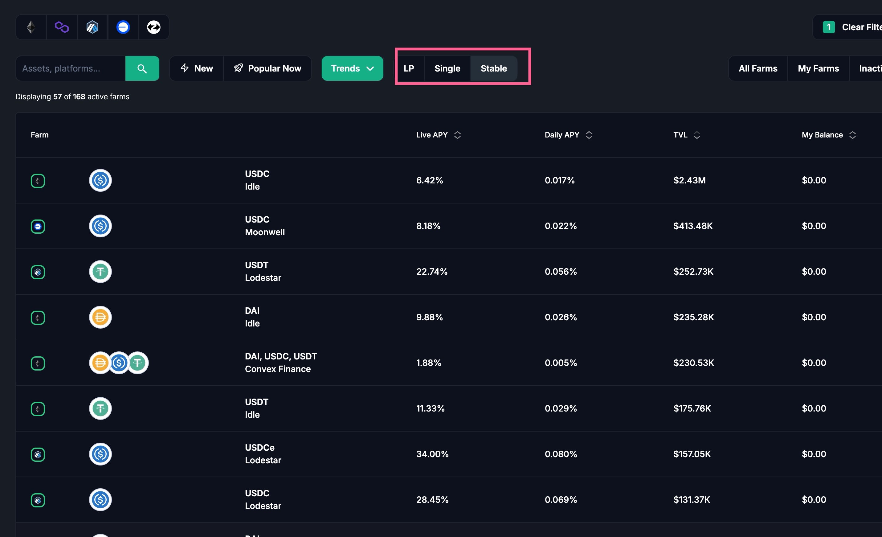 So I scan through these, based on the Live APY and TVL.