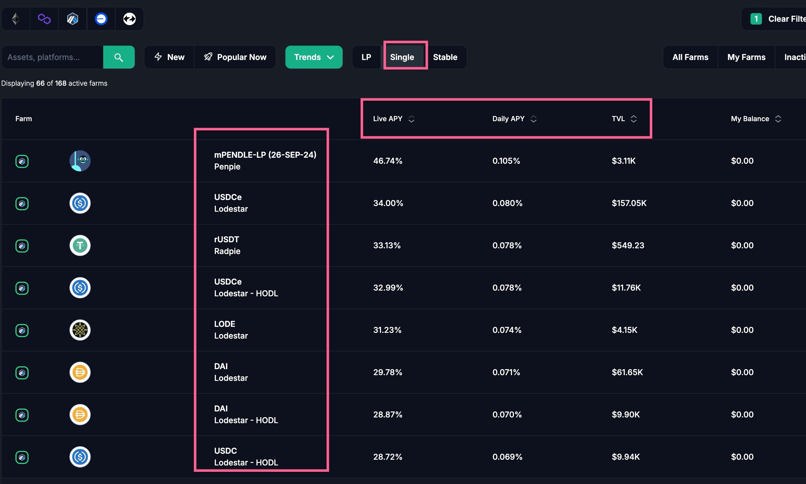 But I sorted this by the Live APY . Typically the listed yield percentage is just a signal at a point in time in a very volatile market.