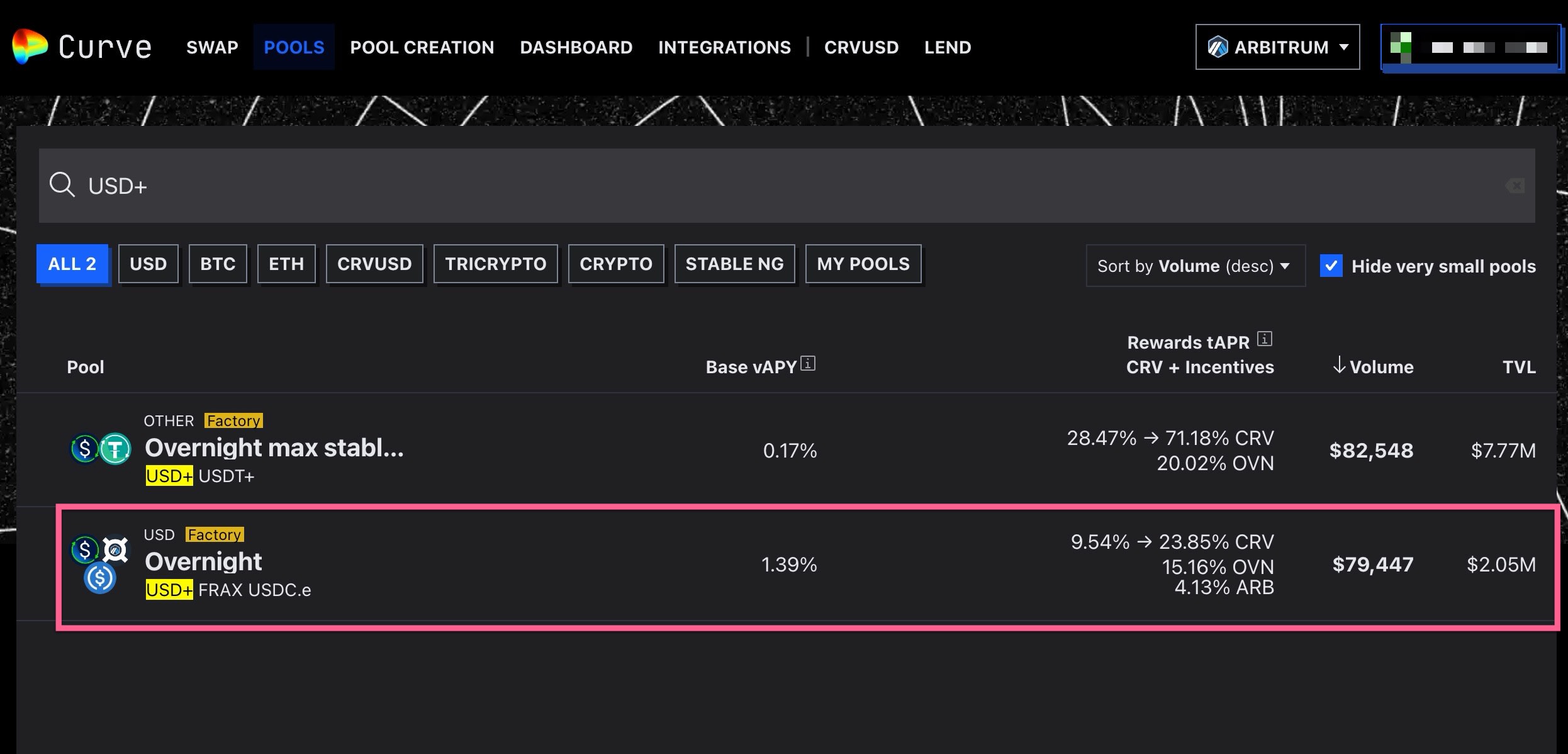 On Curve, there's a pool on Arbitrum which looks like this: