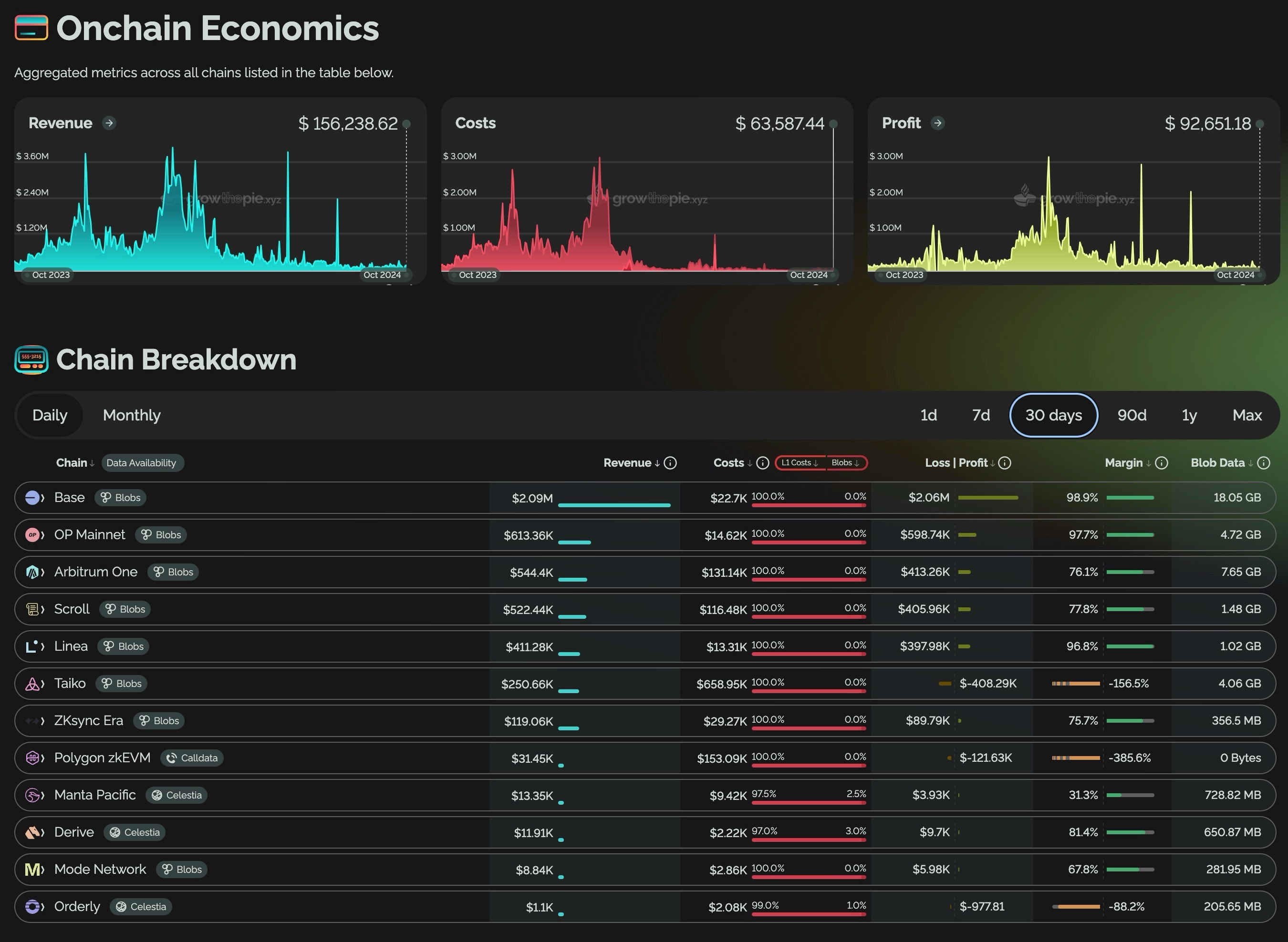This shows the revenue across major L2s with a view into major L2s, a subset of which are Superchains (such as Base and Mode). [3]